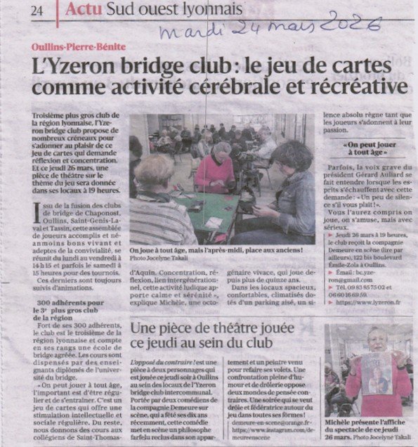 Le club de l’Yzeron dans le Progrès du 24/03/2026